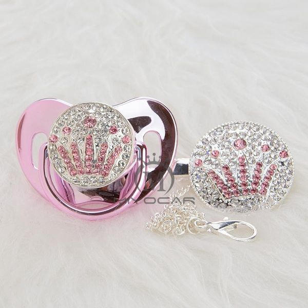 pacifiers# miyocar silver princess bling blue/pink crown pacifier and clip set bpa dummy unique design apcg-9-1