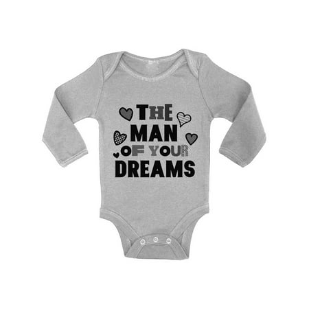 Awkward Styles The Man Of Your Dreams Long Sleeve Bodysuit for Baby Valentine s Day One Piece Valentine s Day Gifts for Baby Boy Valentine s Day Baby Romper Cute Gifts for Boys Mom Baby Boy Bodysuit