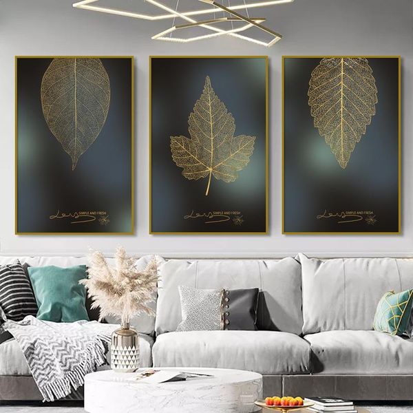 paintings plant canvas wall art abstract golden leaf poster and prints nordic modern picture interior living room decoration