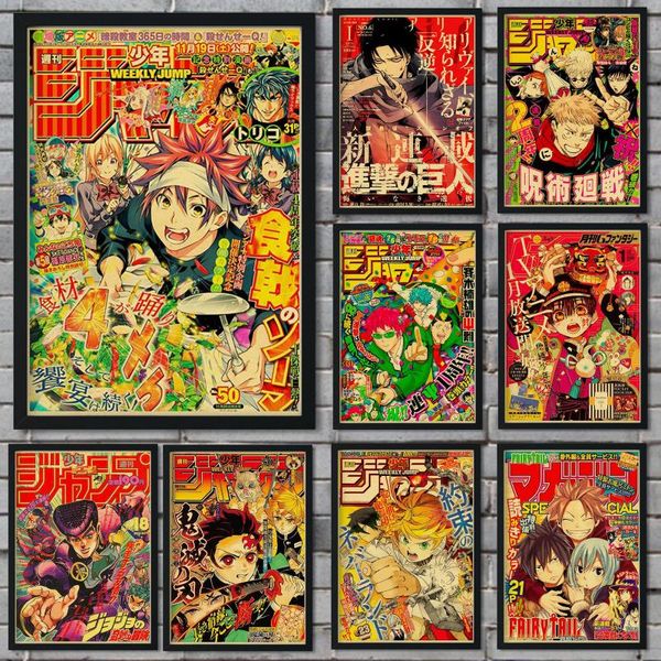paintings retro style japanese anime the final/jujutsu kaisen/demon slayer/family wall art decoration painting stickers o37