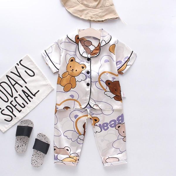 pajamas telotuny kids baby boys girls bear wing printed sets short sleeve fake silk home pijamas+long pants sleepwear outfits, Blue;red