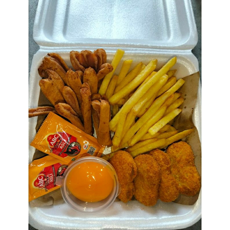 nugget,kentang,sosis + cheese saus dan saus sambal