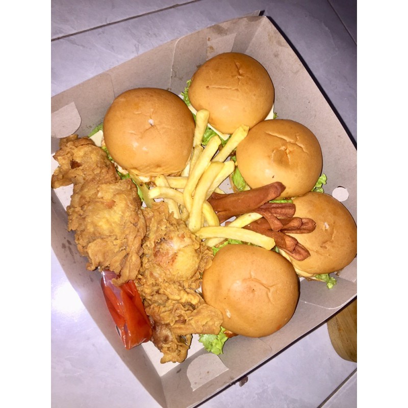 paket burger isi burger 5 ayam 2 sama kentang dan sosis