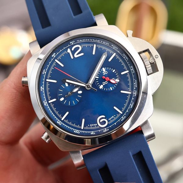 pam 1303 mens automatic watches 44mm dial blue color seagull 2555 mechanical leather belt aisi 316l fine steel luminous, Slivery;brown
