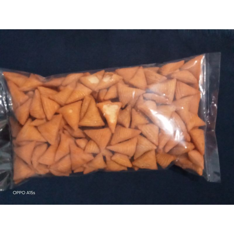 pang pang dengan bentuk segitiga enak renyah tidak terlalu pedas enak buat camilan atau pendamping lauk