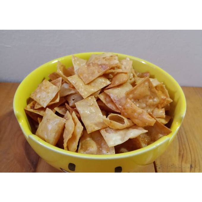 Pangsit kriuk dengan kombinasi daun jeruk nipis