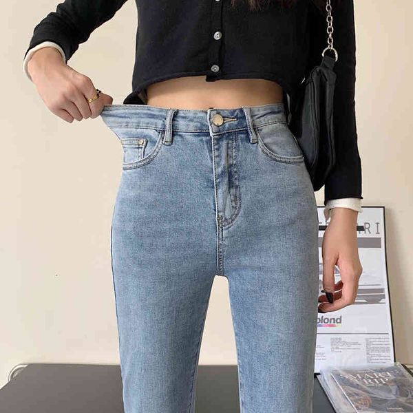 pant since the korean version of straight jeans, students' elastic tights boots, cultivate morale, show slim waist, 9 points, 2021, White