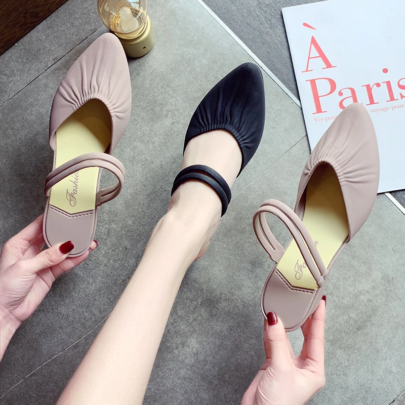 Женские шлепанцы; Удобные повседневные однотонные босоножки с острым носком на тонком каблуке; U30-50
