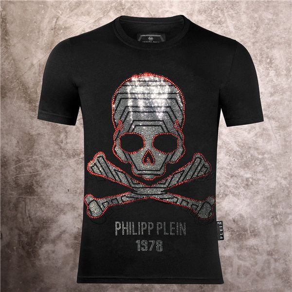 paris men's t-shirt short sleeve cotton skull printed t-shirt round neck slim t-shirt men's fashion pullover skateboard 100% cotto, White;black