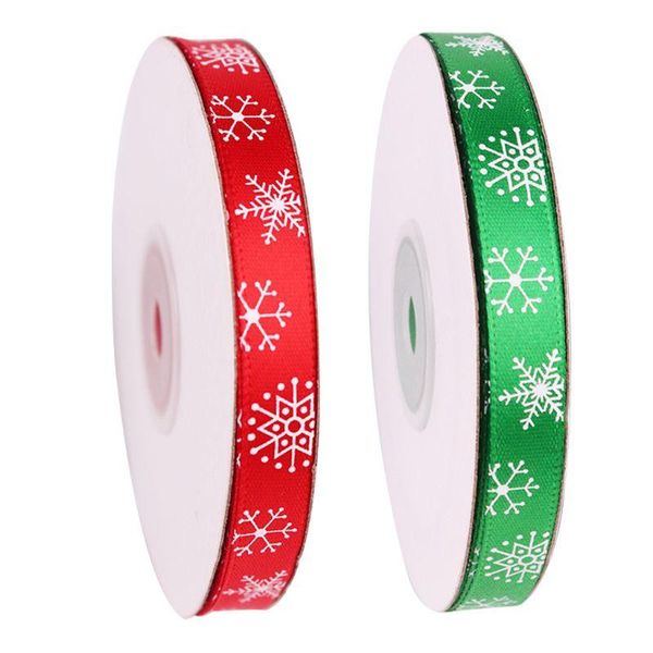 party decoration 22m christmas satin ribbon red green with snowflake pattern for