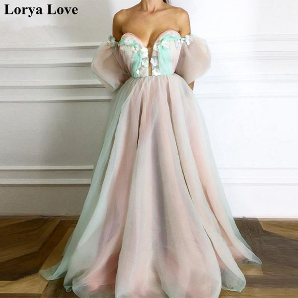 party dresses elegant off the shoulder prom women pink green formal night vestidos a-line appliques sequins tulle evening gowns, White;black