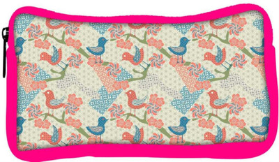 Snoogg Eco Friendly Canvas Multiple Bird Art Designer Student Pen Pencil Case Coin Purse Pouch Cosmetic Makeup Bag (PINK) Pouch(Multicolor)