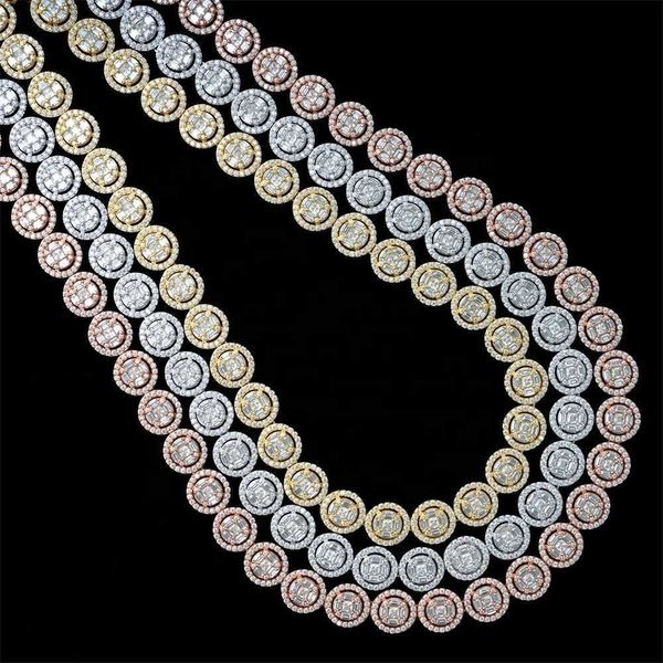 pass diamond tester vvs baguette cut iced out hip hop mossianite miami cuban link chain necklace, Silver