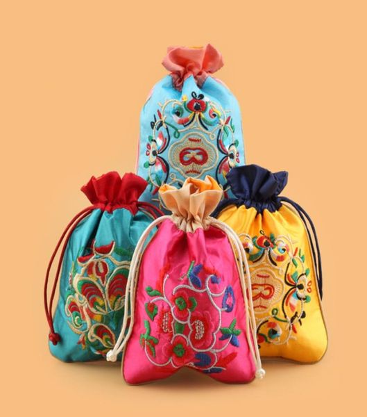 patchwork embroidery floral small packaging bags for jewelry gift bag chinese ethnic drawstring satin fabric coin purse pouch spic5475199, Pink;blue