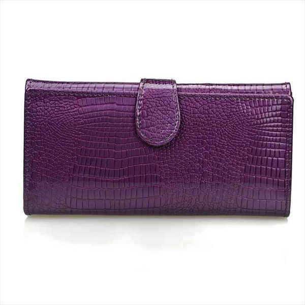 pattern crocodile wallet women leather trifold long patent purse zipper female coin bag, Red;black
