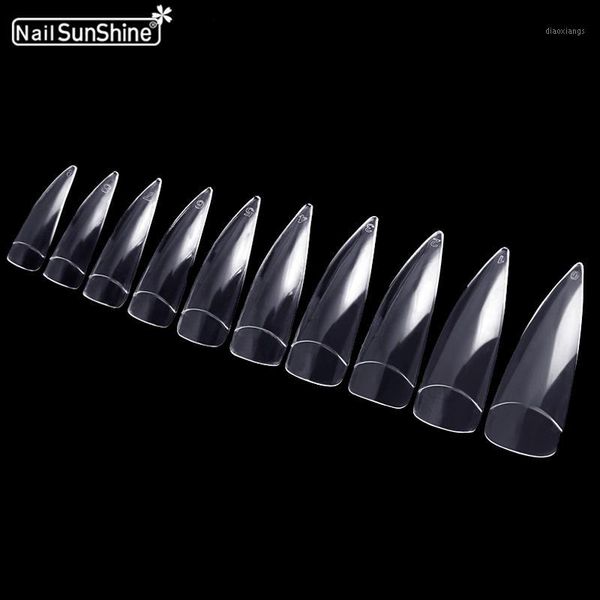pcs clear fake nails art long salon tips stiletto plastic acrylic full cover false nude ongle transparent1, Red;gold