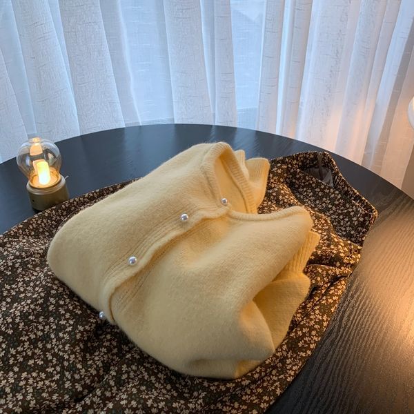 pearl buckle autumn and winter thickened knitting cardigan female round neck inside soft sweater cardigan coat 210218, White;black