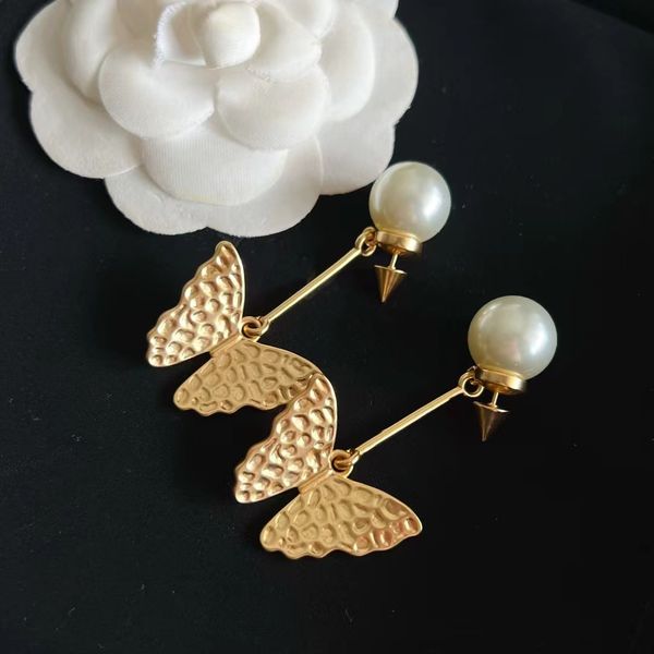 pearl wedding earrings new pearl butterfly pendant temperament earrings, Golden