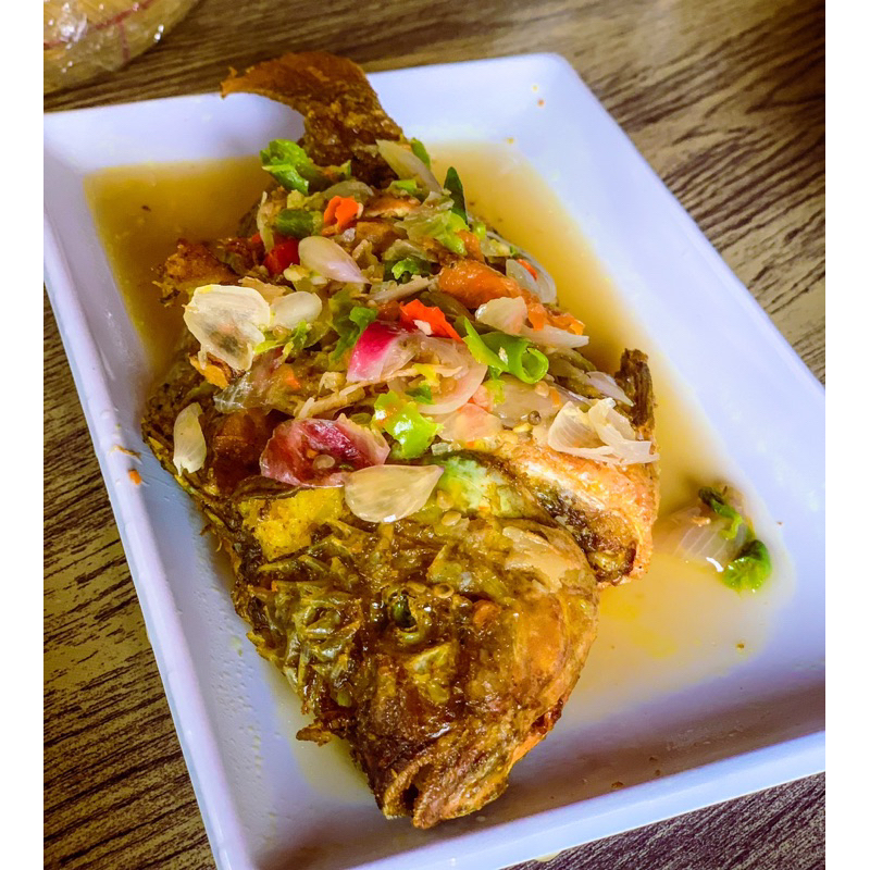 pecak ikan segar yang disiram demgan kuah pecak segar