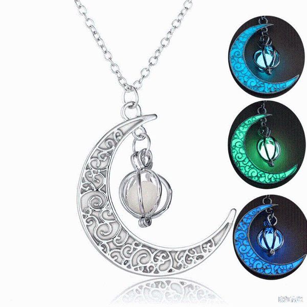pendant necklaces 2021 trendy -selling luminous moon pumpkin necklace halloween explosion accessories chain, Silver
