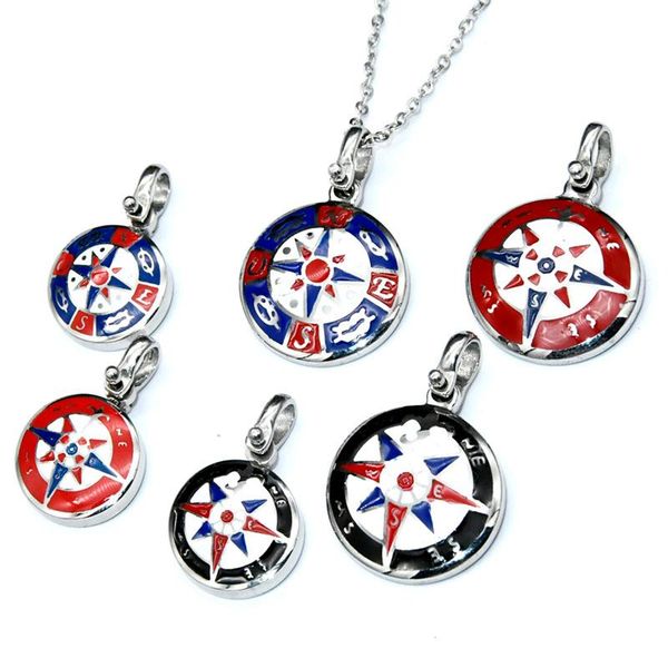 pendant necklaces 316l stainless steel round pendente collana blue black red enamel compass satr necklace for sailor mariner jewelry, Silver
