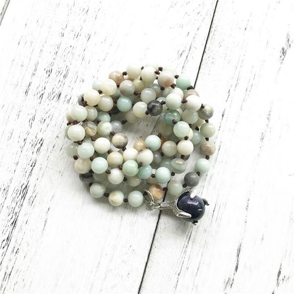 pendant necklaces 36inch/42inch/60inch natural amazonite necklace endless hand knotted yoga jewelry gift for friend family, Silver