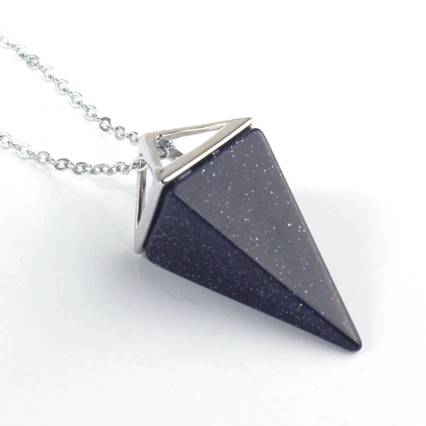 pendant necklaces blue sand stone square pyramid silver plated necklace rock crystal jewelry