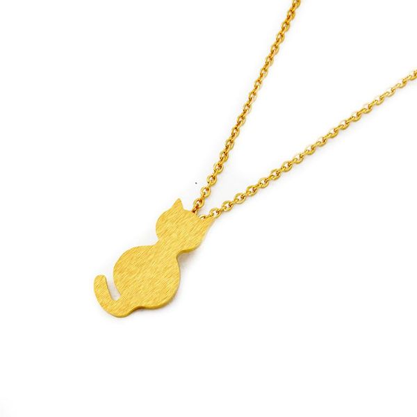 pendant necklaces cute sitting cat necklace women fashion kitten animal choker stainless steel chain jewellry kids gifts, Silver