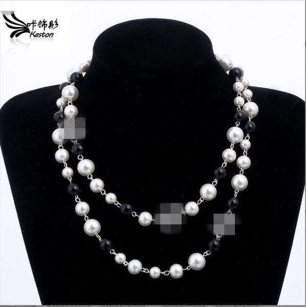 pendant necklaces double-layer pearl letter necklace fashion sweater chain birthday christmas gift, Silver