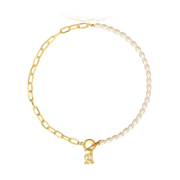 pendant necklaces elegant gothic old english letter imitation pearl choker for women gold initial toggle chain jewelry gifts, Silver
