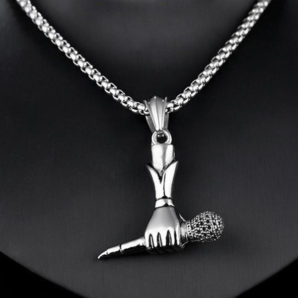pendant necklaces exaggerated personality singer microphone necklace masculine dominant alternative trend creative, Silver