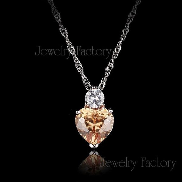 pendant necklaces fashion hearts cut quality + cz cubic zirconia round necklace for women anniversary jewelry, Silver