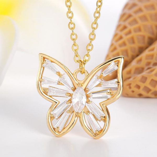 pendant necklaces ins butterfly crystal zircon gold for women chain on the neck couple jewelry aesthetic gift girlfriend, Silver
