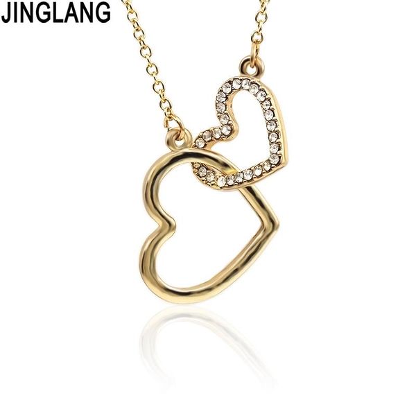 pendant necklaces jinglang romantic party necklace beating simple double heart fine jewelry gift, Silver