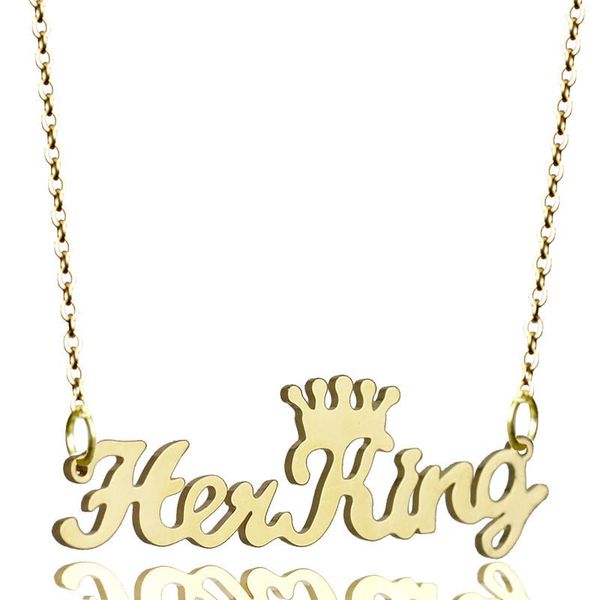pendant necklaces love king crown necklace gold queen princess nameplate pendants letter couple jewelry party gift, Silver