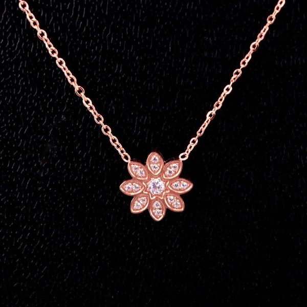 pendant necklaces love stainless steel zircon flower pendants necklace romantic crystal sunflower women wedding jewelry xmas gift, Silver