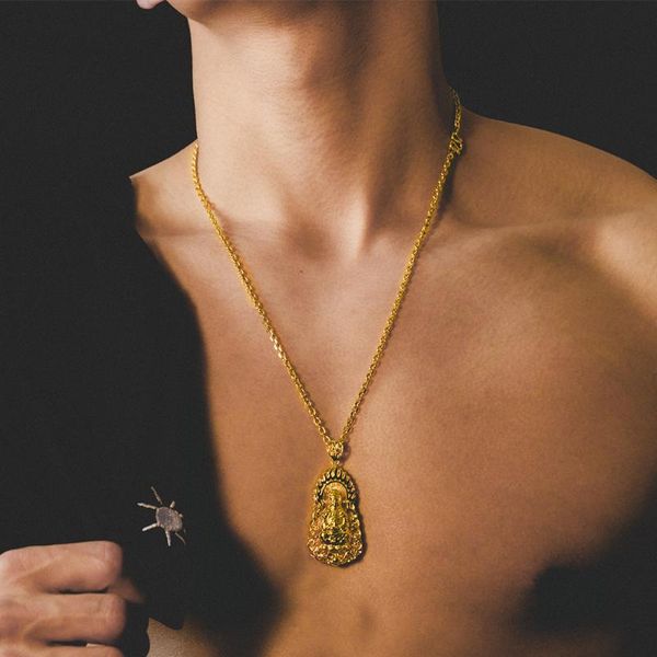 pendant necklaces men necklace guanyin accessories european and american trends, Silver