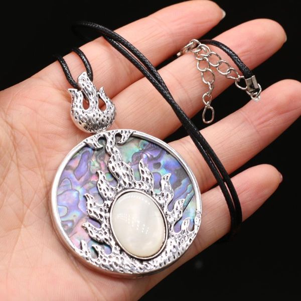 pendant necklaces natural shell 45x45mm round abalone white necklace for jewelry gift length 55+5cm, Silver
