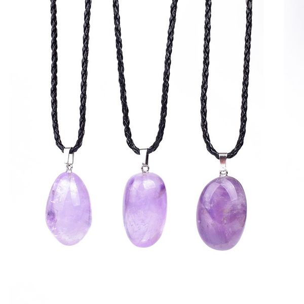 pendant necklaces random natural amethysts pendants & women fashion purple crystal energy stone men healing reiki jewelry gift, Silver