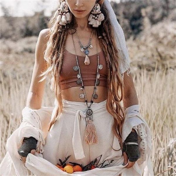 pendant necklaces summer boho all-match leather alloy chain necklace cotton tassel long pendants for women jewelry gift, Silver