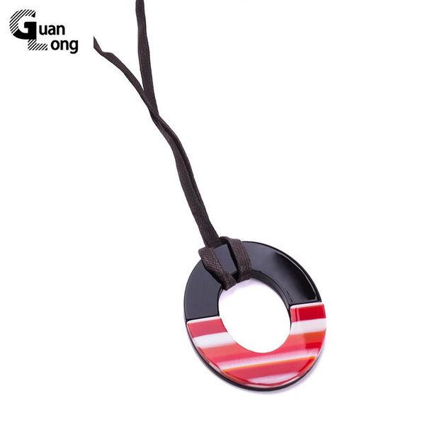pendant necklaces wholesale fashion adjustable long rope leather oval resin necklace bijoux for women trendy jewelry, Silver