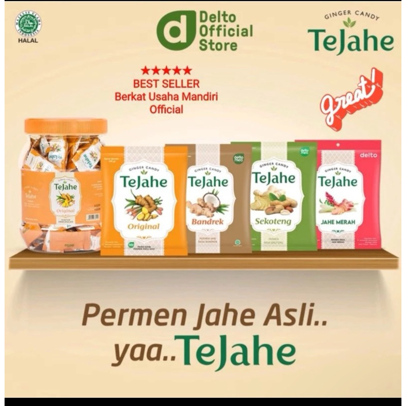 Permen Tejahe Jahe Merah adalah produk permen yang berisikan ekstrak jahe merah dan bahan-bahan alami yang berkualitas, membuat permen Tejahe begitu terasa jahe merahnya.