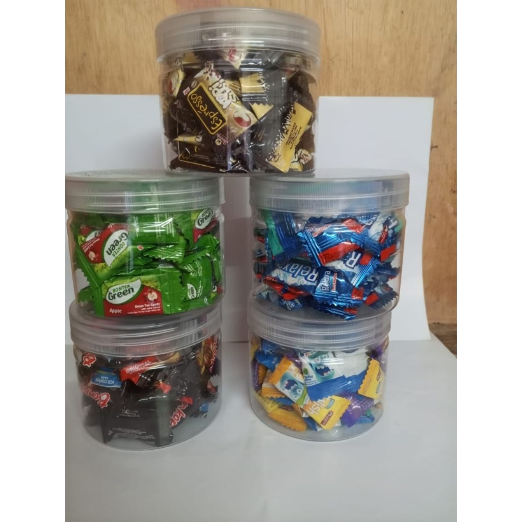 kemasan toples yang satu ini enak untuk di ecer di warung kecil... dengan cantik nya dari tampilan toples nya