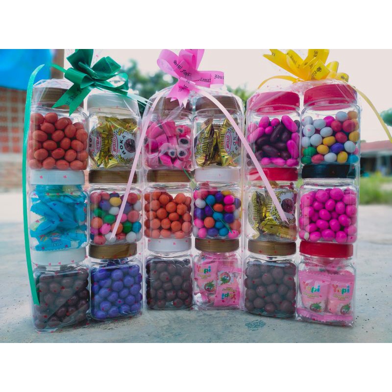 jika stok coklatnya tidak ada. akan kami ganti dengan permen yupi atau coklat yang lain ya bun. tapi tetap sama isian 6 toples..