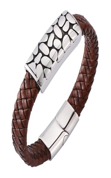 personality geometry men039s brown woven leather bracelet stainless steel magnetic buckle fashion charm bracelet 7sp01696755371, Golden;silver