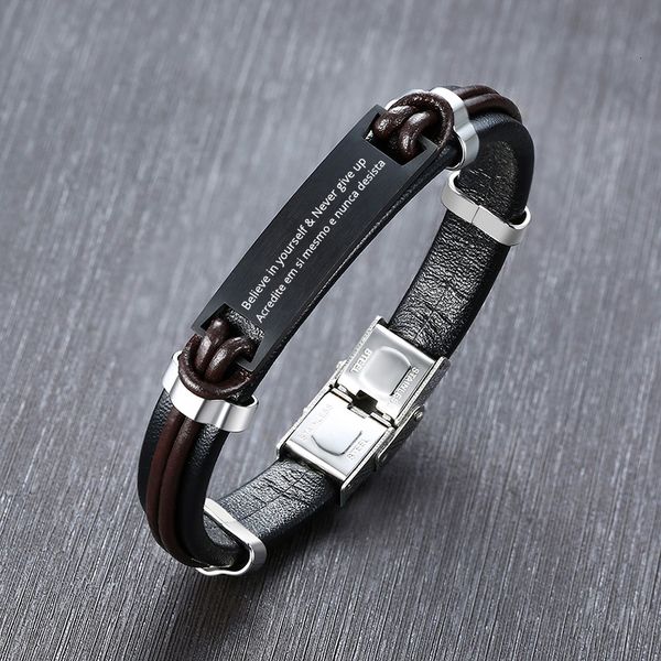 personalized men's leather id bracelet stainless steel engraving inspiration initials name date boyfriend gifts, Golden;silver