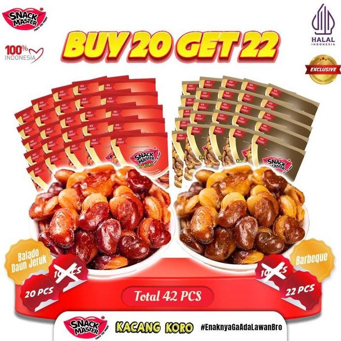[EXCLUSIVE PAKET HEMAT] KACANG KORO 20gr ( BUY 50 FREE 60 , BUY 20 FREE 22 ) Mix Rasa BBQ dan Balado Daun Jeruk - Koro Kulit HALAL SNACK MASTER Camilan Food Makanan Cemilan Jajanan snack murah snack jadul