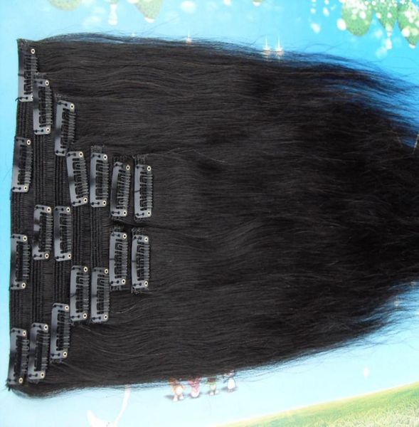 peruvian human hair clips in wefts natural black color straight hair product can be dyed 9pieces one set beauty hair wefts2797104