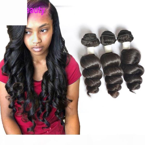 peruvian human hair loose wave 3 bundles virgin hair extensions 3 pieces one set loose wave double wefts, Black