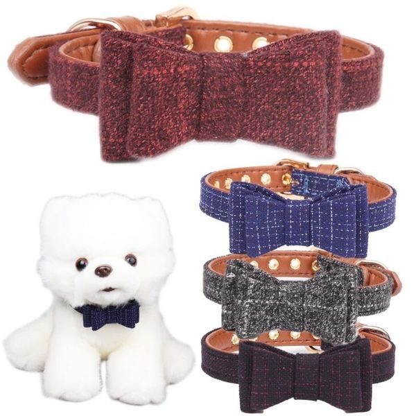 pet cat dog collar neck strap bowknot british style neckerchief for teddy small pug chihuahua fashion new red blue gray
